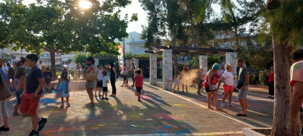 Δεν χρειάστηκαν πολλά για να πάρει «λίγο χρώμα» η ρημαγμένη πλατεία: Χρώματα σε σακουλάκια, δυνατή μουσική και αρκετό κυνηγητό ήταν υπέρ αρκετά για νιώσουν στιγμές ξεγνοιασιάς και χαράς, όσοι αποφάσισαν να περάσουν το απόγευμά τους λίγο διαφορετικά από τα συνηθισμένα…