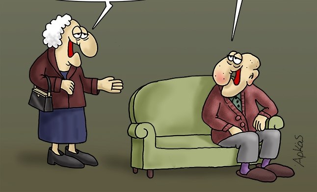 Στο σημερινό σκίτσο βλέπουμε πένα ζευγάρι ηλικιωμένων στο σαλόνι του.