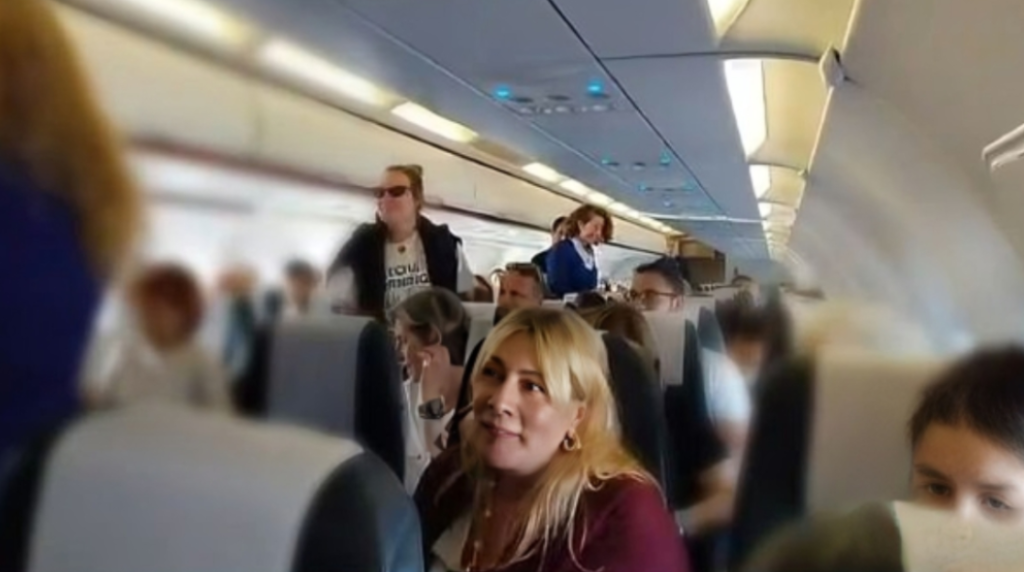 Σε πλάνα που προβλήθηκαν την Πέμπτη 5 Μαρτίου στο «Happy Day» από τη μοναδική πτήση που πραγματοποιήθηκε από το Ομάν προς την Ελλάδα, φαίνεται η Σμαράγδα Καρύδη μέσα στο αεροσκάφος, ανάμεσα σε άλλους επιβαίνοντες.